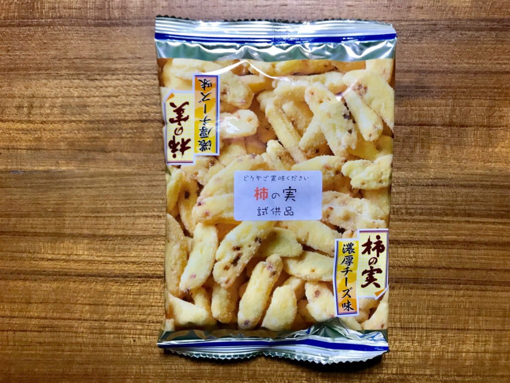 柿の実の濃厚チーズ味が試供品で一袋ついてきました。チーズと揚げ餅の相性が良く味付けも濃いめで美味しかったです。やはりチーズ味のお菓子はハズレがないです。バジルやブラックペッパーの味付けも絶対合うと思うので種類が増えたら柿の実のファンがもっともっと増えると思いました。