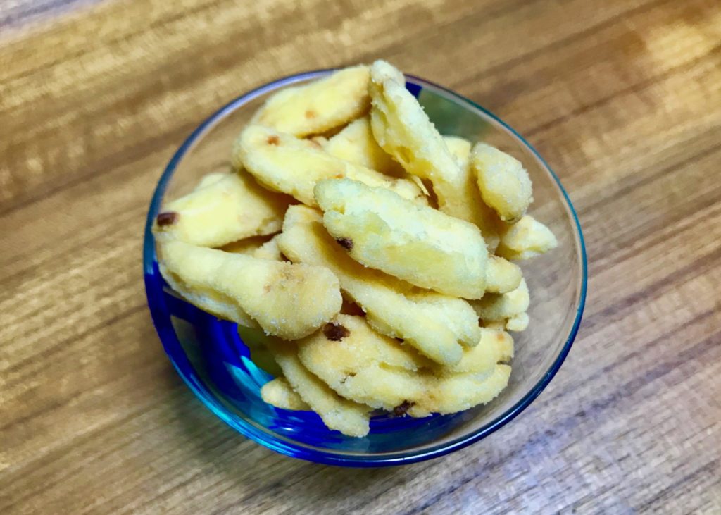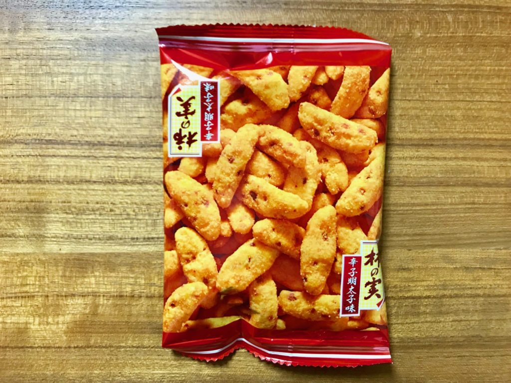 辛子明太子味ですが辛味は弱く辛いものが苦手な人でも美味しく食べられます。かねふくの明太子を使ったお菓子は少しずつ増えてきましたが、柿の実との相性ももちろんバッチリ。食べ終わった後に残るピリッとした辛味が良い感じ。味付けは濃すぎないのでサクッとした柿の実の旨味を楽しみながら明太子の風味を楽しめます。男性受けが良いのはこれですね。