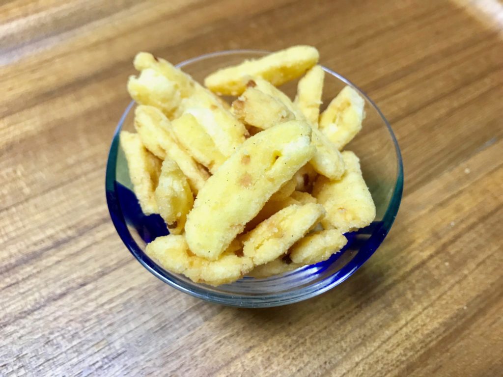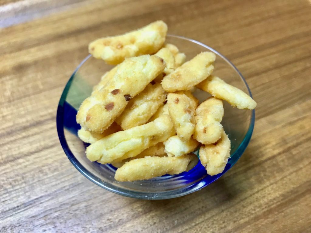 食べてみると柿の実と食感などはほぼ同じですが、このコーンポタージュ味がすごく美味しかったです。袋を開けた時からコーンポタージュの甘い香りがして食べてみるとやさしい甘さにサクッとしていてくせになります。小腹が空いた時に食べるのにちょうど良い量ですね。