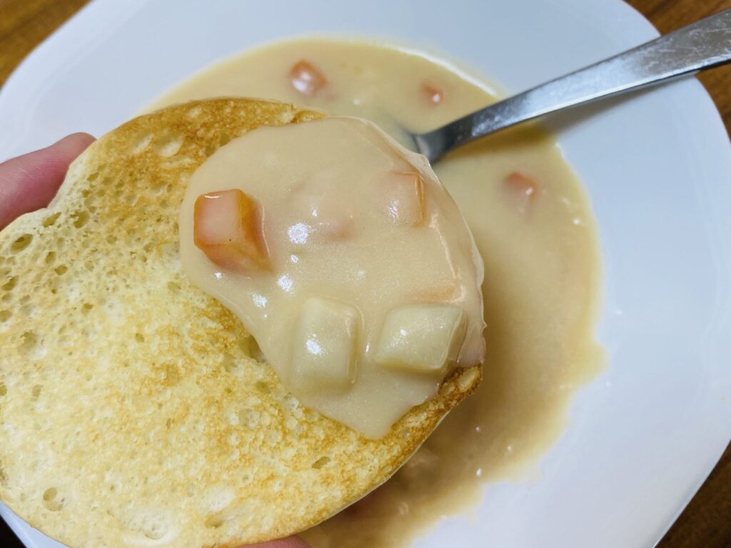 シチューにご飯はあり?なし?なんて論争がありましたが、ご飯にもパンにもどちらにもあう味付けになっています。程よい塩気が良いですね。