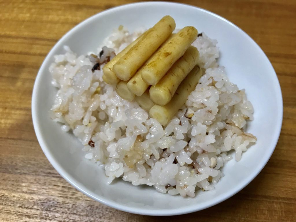 細めのごぼうを選んでご飯に載せて食べてみました。