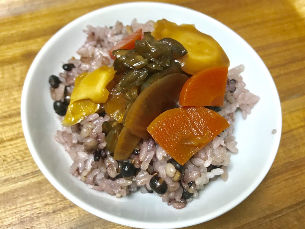 国産の大根、胡瓜、生姜、人参をしょうゆ漬けにしたのがみっくすたまり。