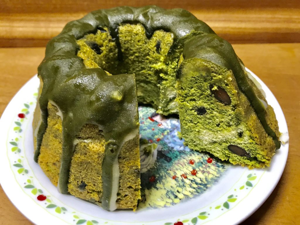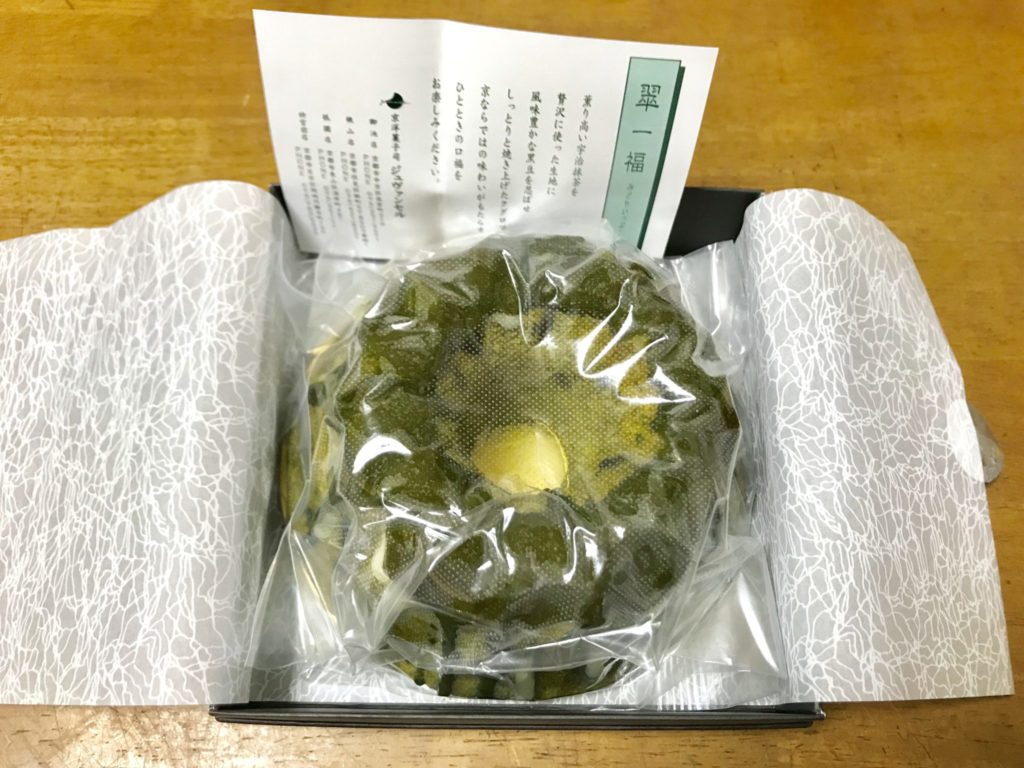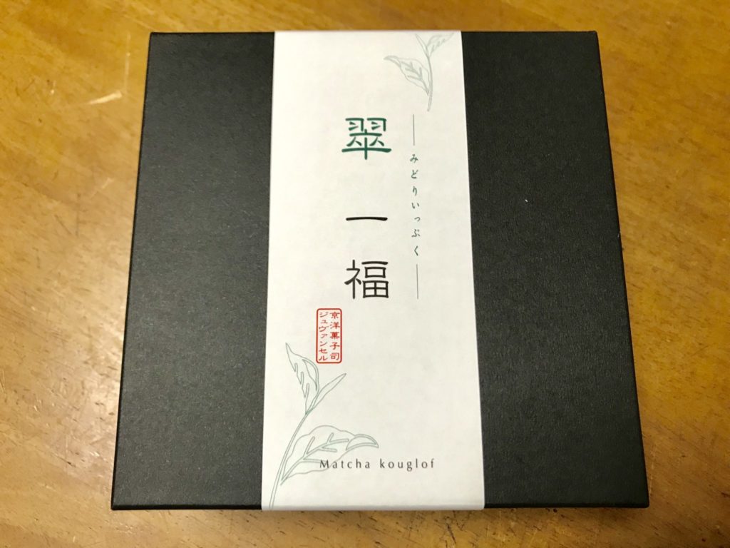 ジュヴァンセルのクグロフ翠一福は京洋菓子のお店なので、日本らしく京都宇治の香り高い抹茶と使っていて黒豆が入っています。袋を開けると抹茶の匂いと甘い香りがします。