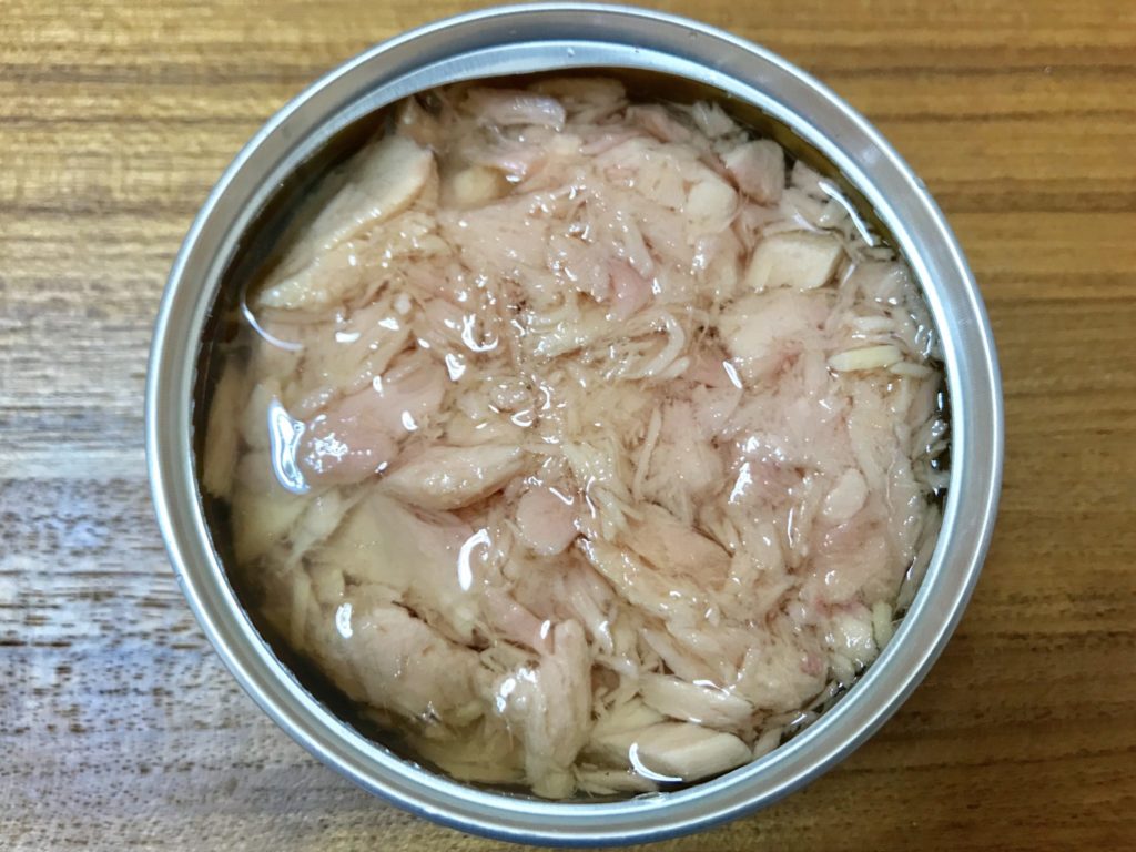 綿実油に使った大きめのツナが特徴です。フレークもいいですがこれだけ大きいツナの身はテンションが上がります。