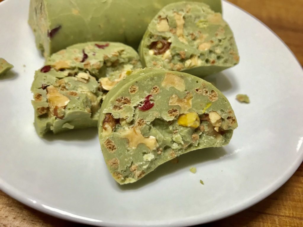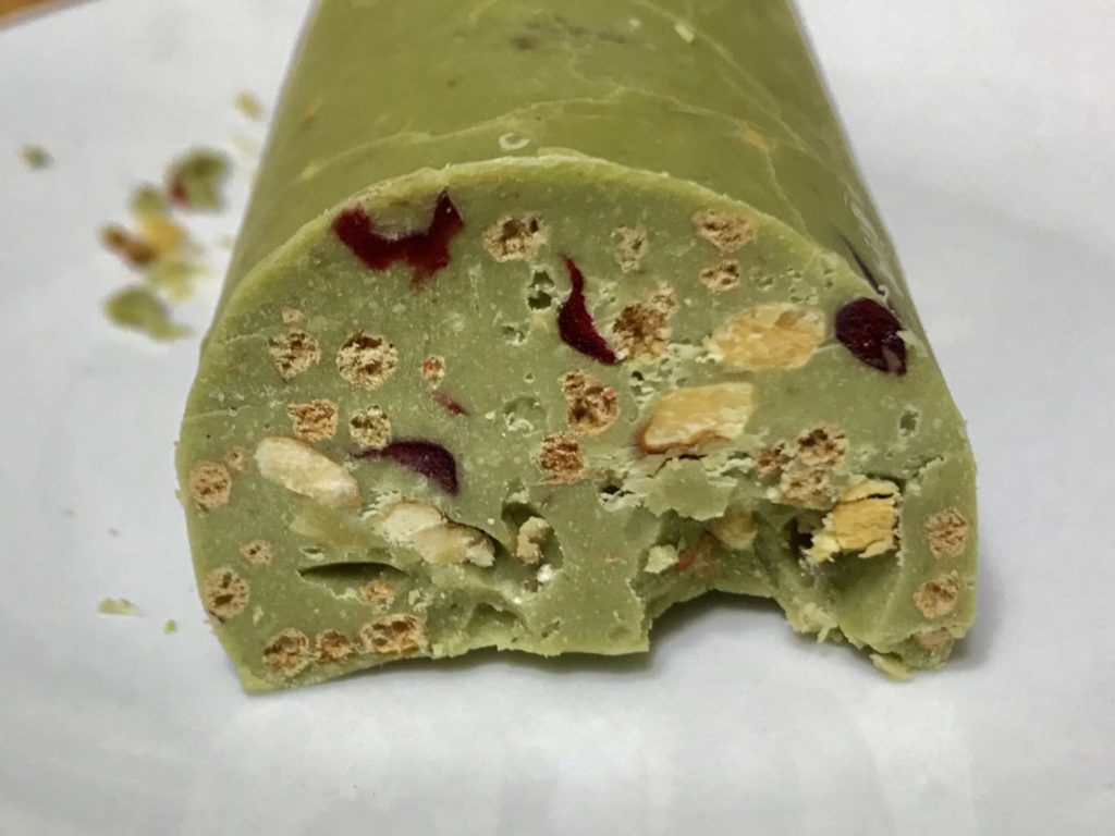 ピスタチオチョコレートとクランベリーの部分を食べると甘さの中に