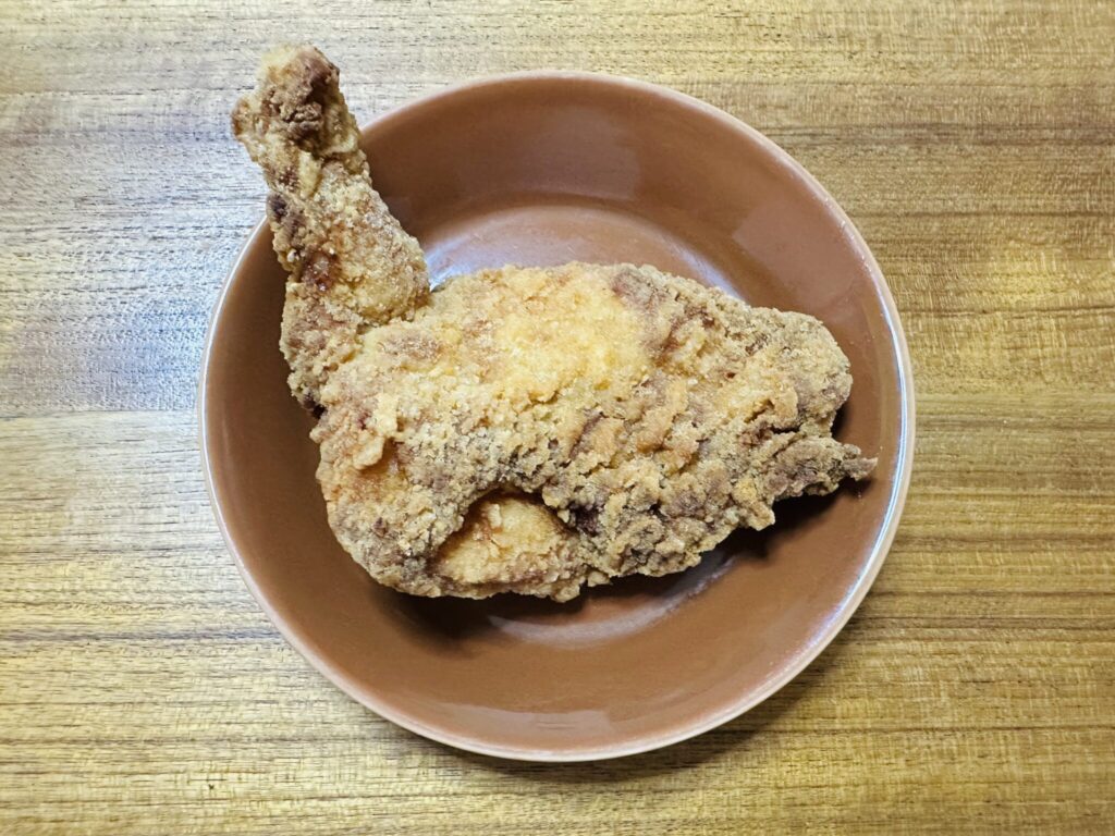 味付けは醤油ベースで、ムネ肉なので脂っこさは控えめ。それでいて、1本でも十分に食べ応えがあります。