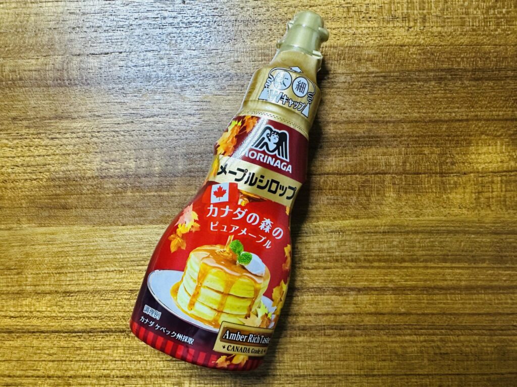 今回は自宅用に森永のメープルシロップを用意して実食。