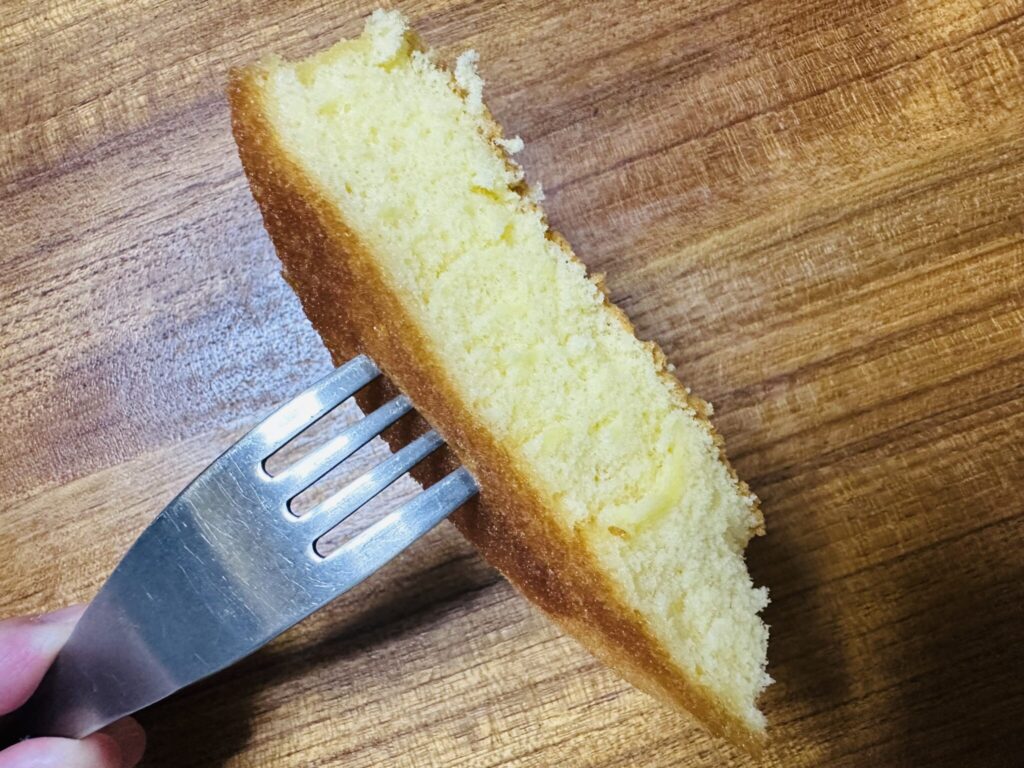 生地はふんわり、しっとりとした口当たり。フォークを入れるとやわらかく沈み、断面からも軽さが伝わります。重たさや粉っぽさはなく、軽く食べられるスフレらしい生地だと感じました。