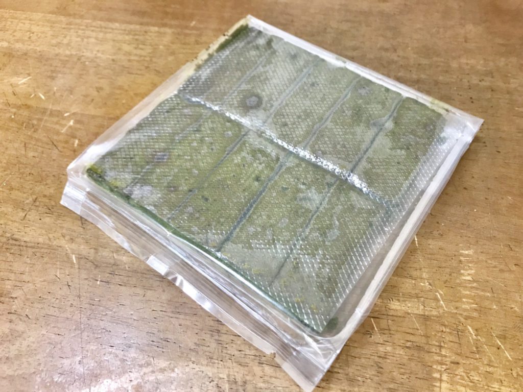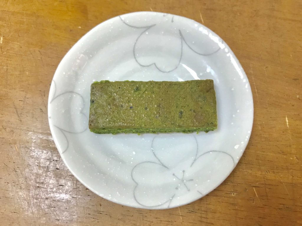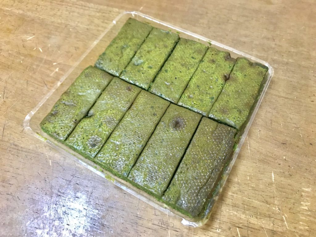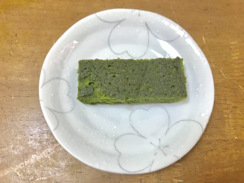 表面はうっすら焼き目がついていて、裏面は抹茶の味が染み込んでいるのが