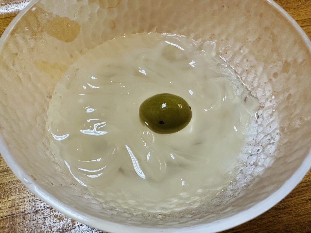涼しげな見た目が良いですね。青梅が1粒丸々入っていて美味しそう!