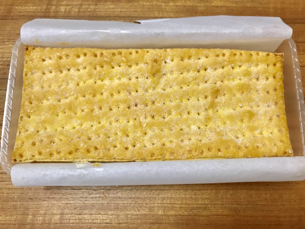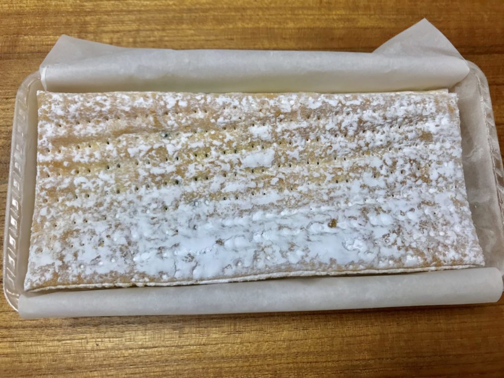 食べてみるとサクサクのミルフィーユ生地の表面に砂糖がついていて