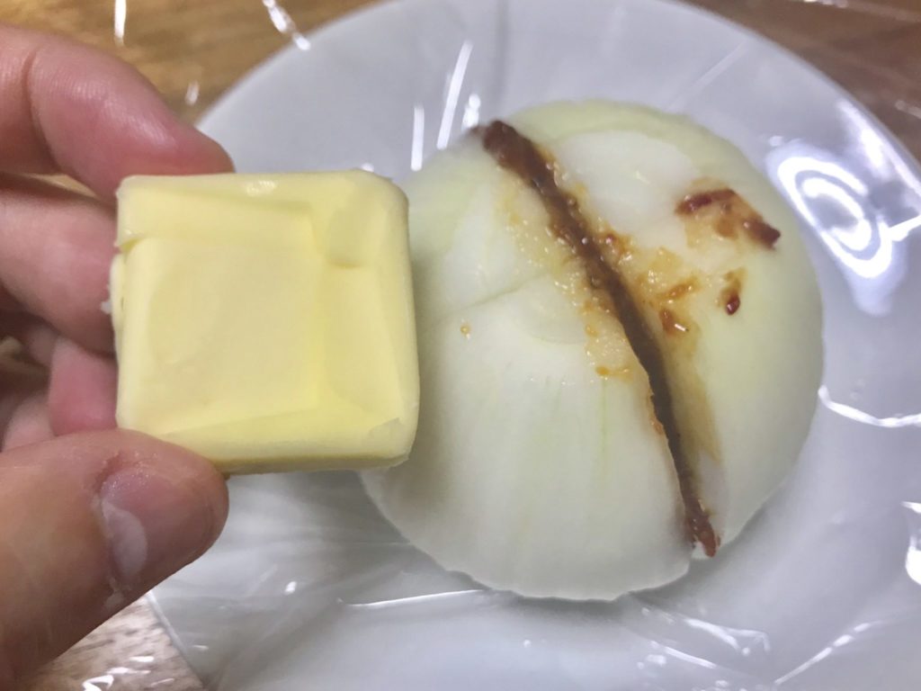 電子レンジでできる簡単料理。玉ねぎの皮をむいて片面に十字の切れ込みを入れます。切れ込みにくうすみそお好みの量を入れてバターを乗せてラップに包んで600wの電子レンジで4分で出来上がり。玉ねぎの大きさによって温める時間は要調節。