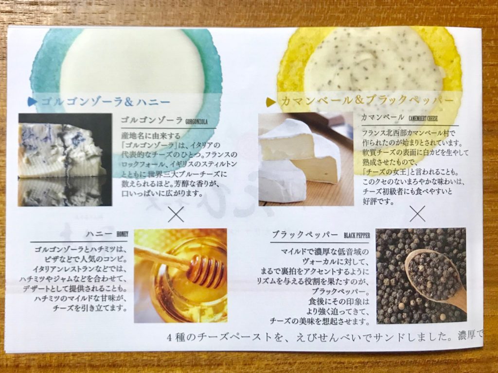 胡椒のピリッとした味付けのチーズがサンドされた大人なえびせん。