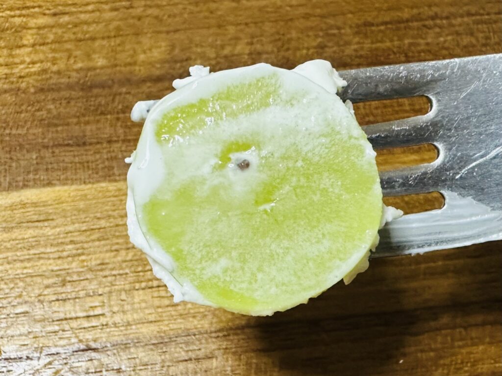 クリームは主張しすぎず、シャインマスカットの甘さと瑞々しさを引き立てる役割に徹している印象。口溶けも良く、フルーツと一緒に食べたときのまとまりがきれいです。