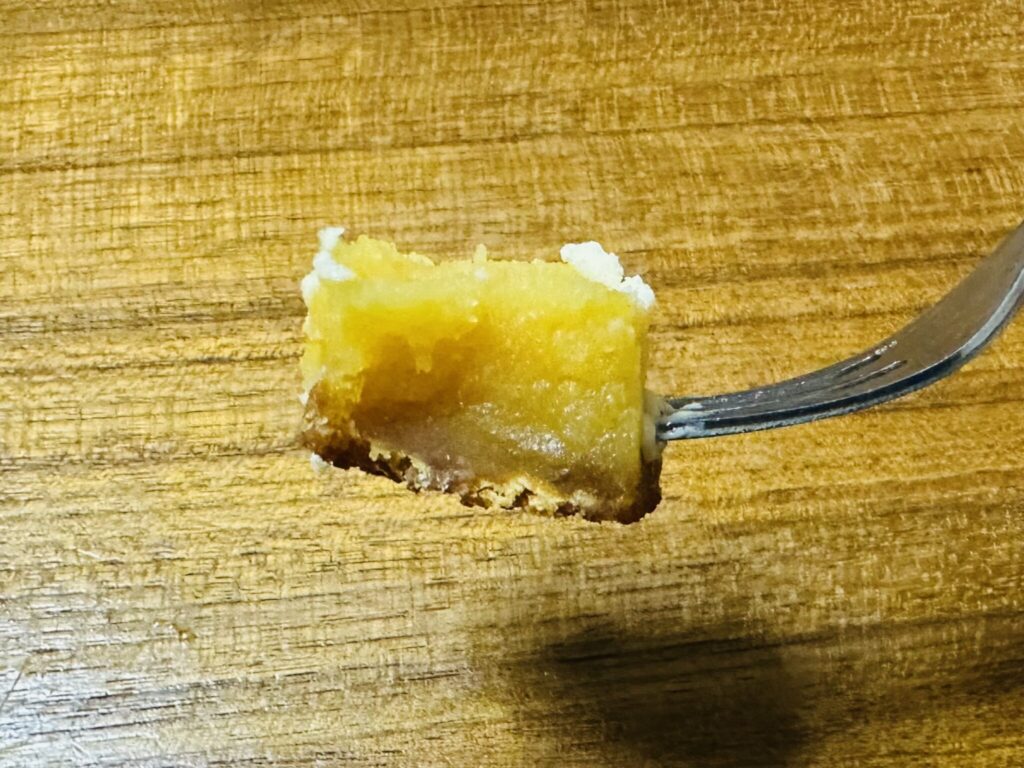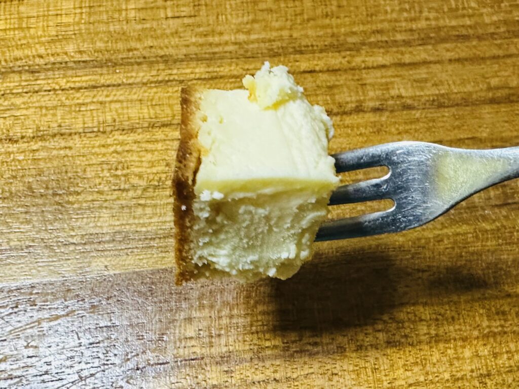 解凍時間は6時間ほどがひとつの目安ですが、個人的には、しっかり解凍された状態が好み。翌日に残りを食べたときのほうが、チーズケーキとスイートポテトの一体感がより強く感じられました。底のガリっとした食感も失われていなかったのが印象的です。